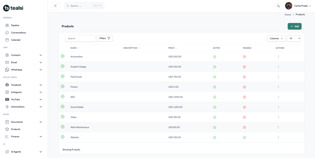 Organize your products and services in one place, set pricing, manage details, and connect everything directly to your sales process so nothing slows you down and every offer is ready to convert.
